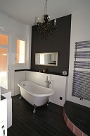 | Böden | Original erhaltenes Fischgrätparkett und Holzdielen, in Küche und Bad Fliesen |